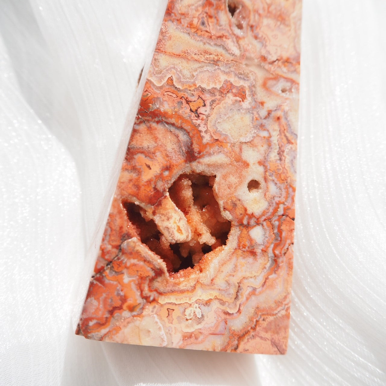 Crazy lace agate is commonly referred to as the "laughter stone," or "happy lace." It's a balancing and protecting stone, believed to ward off the "evil eye," bringing joy and absorbing emotional pain. It helps to increase one's energy and encourage concentration so that one can stay on task and complete goals much easier. It is also said this stone promotes inner stability, composure and maturity and its warm protective properties encourage security and self-confidence.