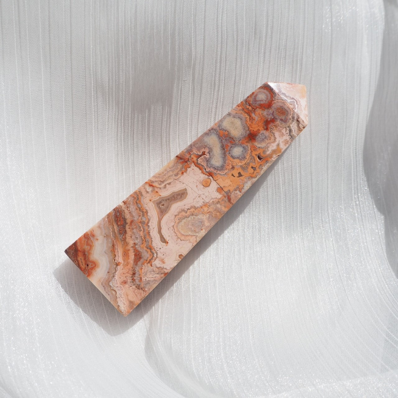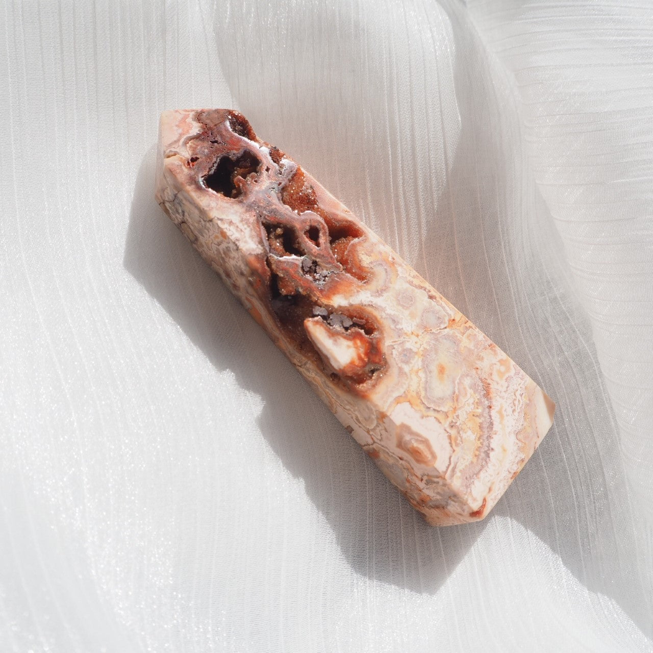 Crazy lace agate is commonly referred to as the "laughter stone," or "happy lace." It's a balancing and protecting stone, believed to ward off the "evil eye," bringing joy and absorbing emotional pain. It helps to increase one's energy and encourage concentration so that one can stay on task and complete goals much easier.