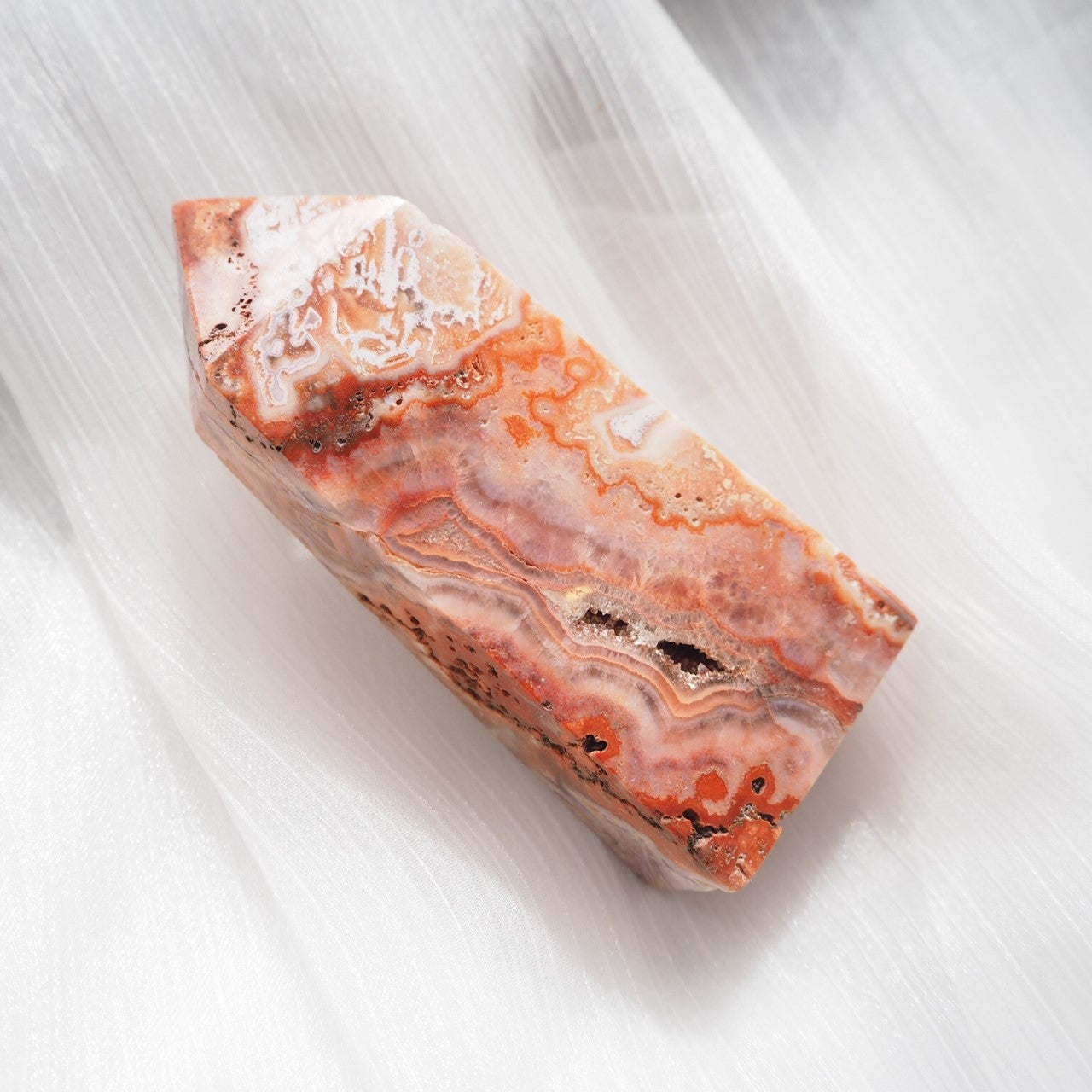 Crazy lace agate is commonly referred to as the "laughter stone," or "happy lace." It's a balancing and protecting stone, believed to ward off the "evil eye," bringing joy and absorbing emotional pain. It helps to increase one's energy and encourage concentration so that one can stay on task and complete goals much easier.